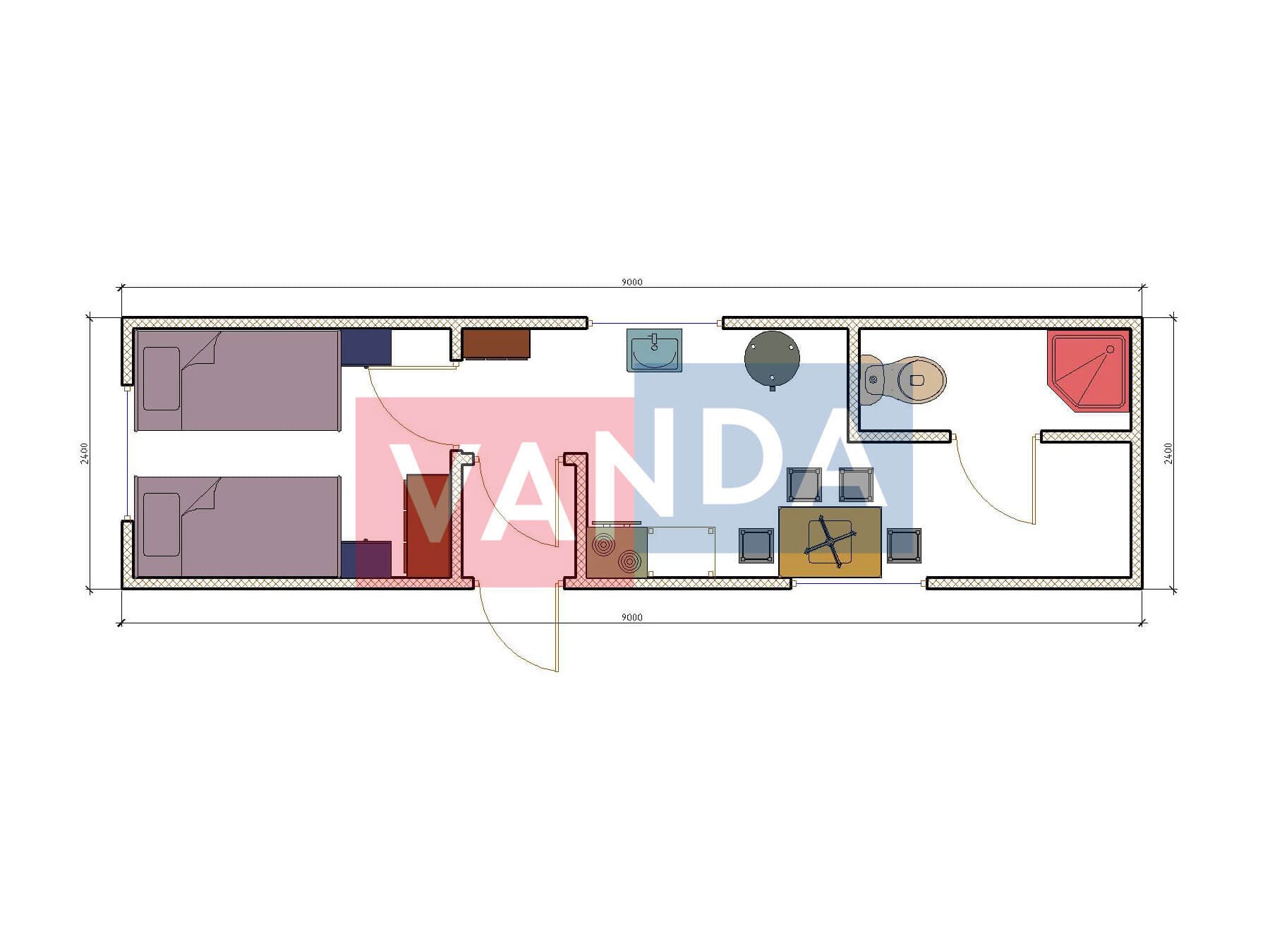 Металлическая бытовка распашонка 5,85 x 2,4 - Вагонка деревянная