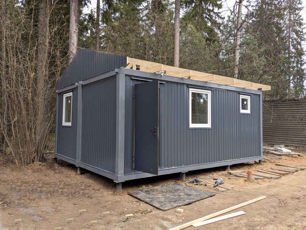 • Крыша блок контейнера Двухскатная кровля. Деревянные фермы, оцинкованный профлист